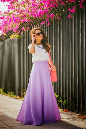 Ako želite da postignete jednostavan i šik izgled onda slobodno izaberite maksi suknju klasičnog kroja. Ove suknje su obično ravne i jednobojne i lepo stoje uz kraće ili crop top bluze sa rukavima ili na bratele. Da biste zaokružili outfit stavite neki tanji kaiš oko struka, traku u kosi koja je po mogućstvu u istoj boji kao i suknja i više narukvica na jednoj ruci.